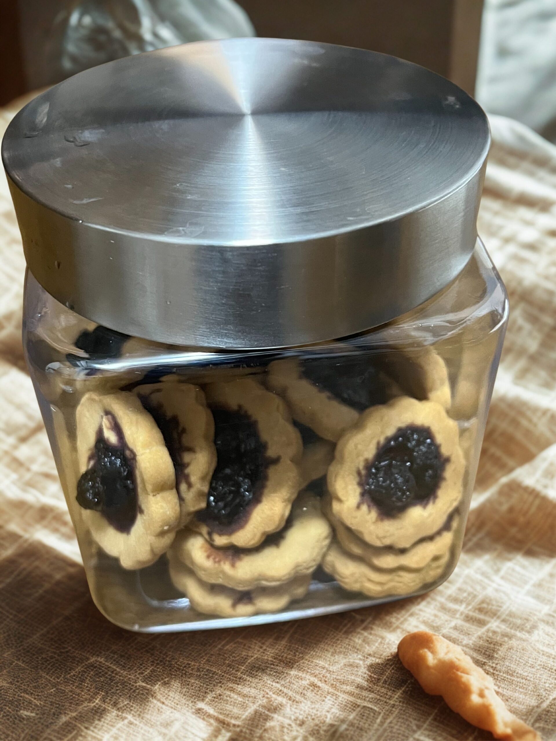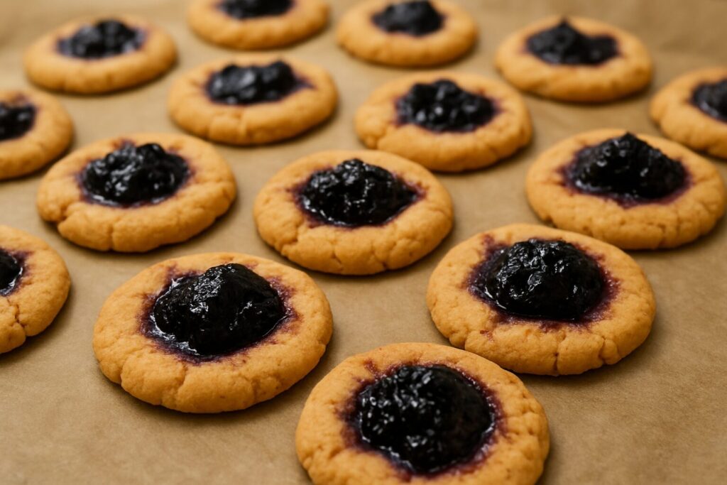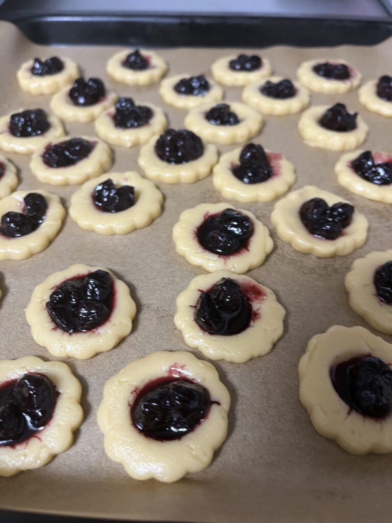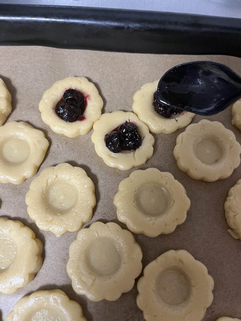 - くぼみにブルベリージャムを乗せていきます。
