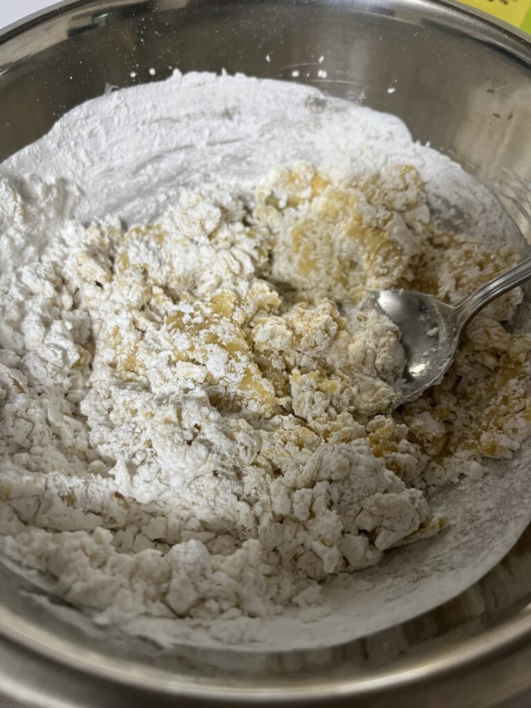 はじめはホロホロしてまとまりにくいですが、混ぜていくと