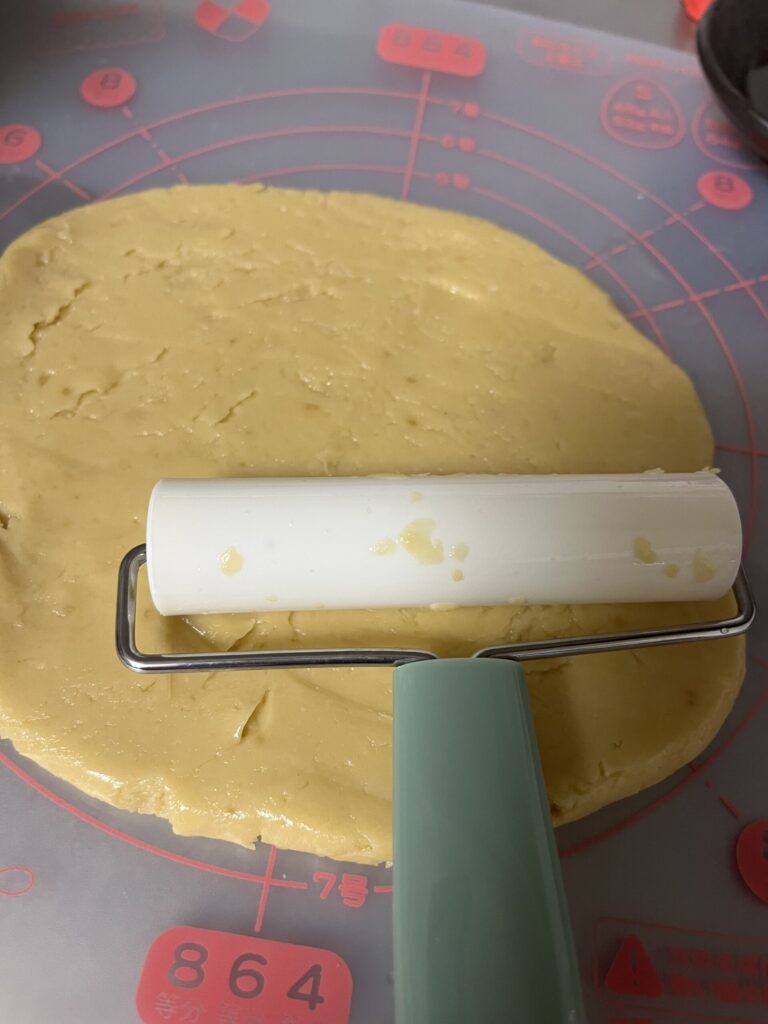 - 綿棒などで生地を広げていきます。少し厚めにしておくと、ジャムが