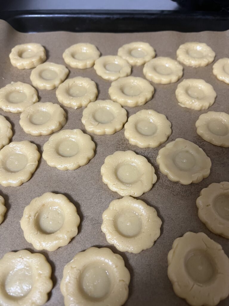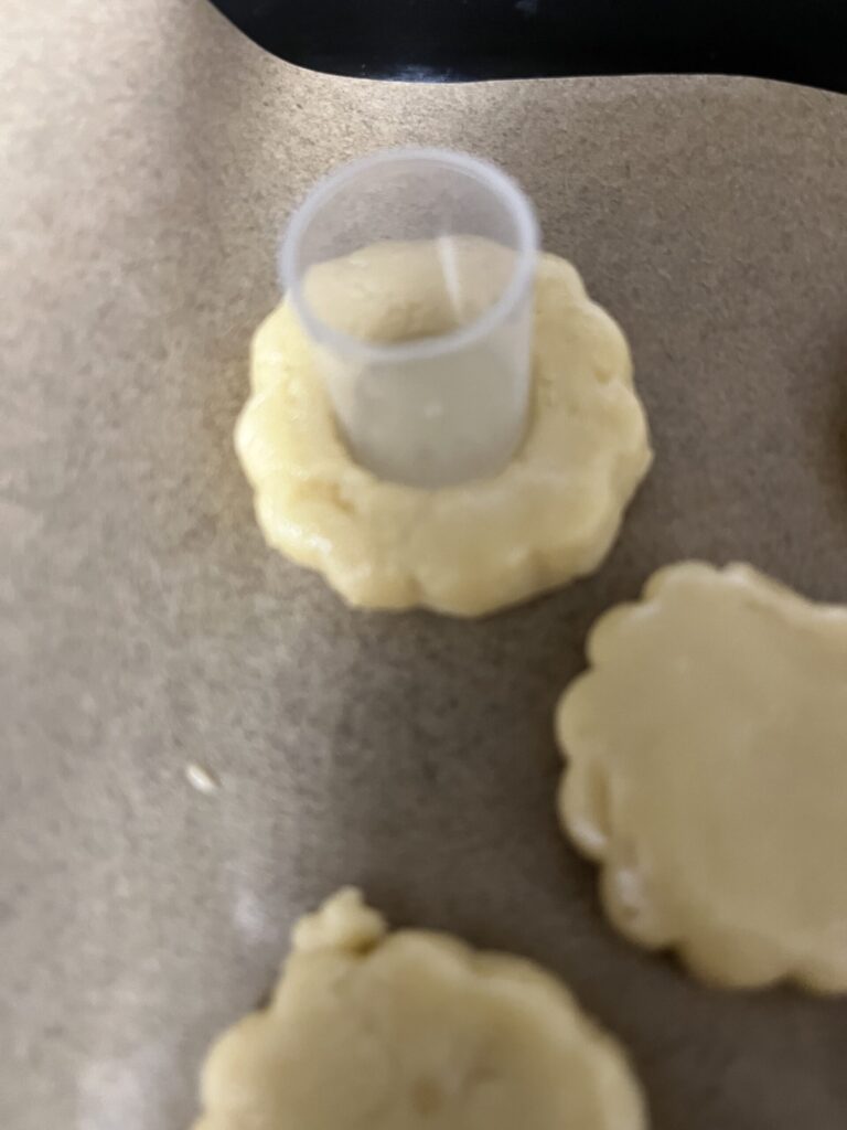 - クッキングシートを敷いた天板の上に並べます。