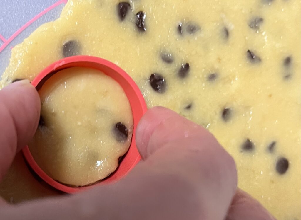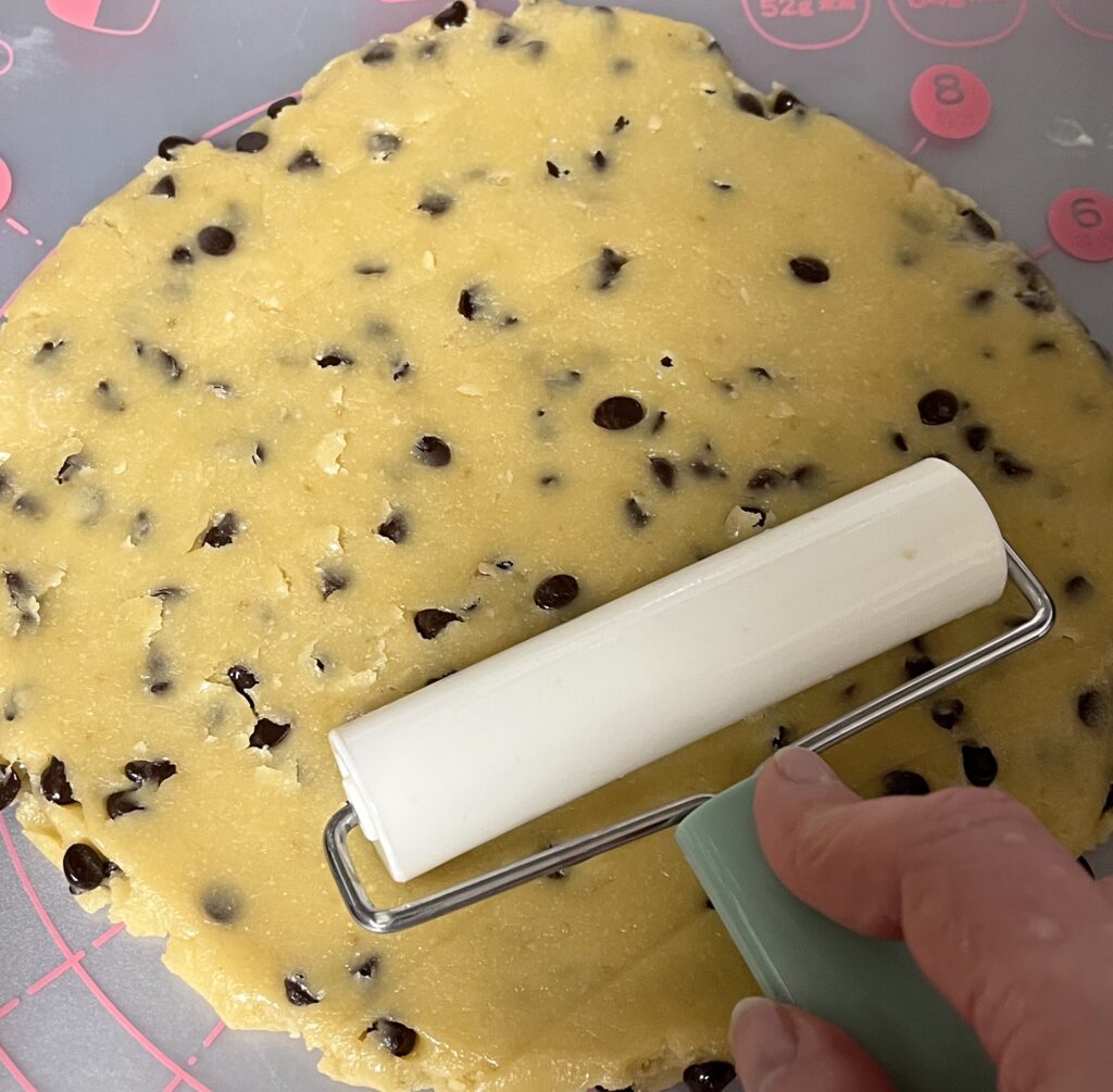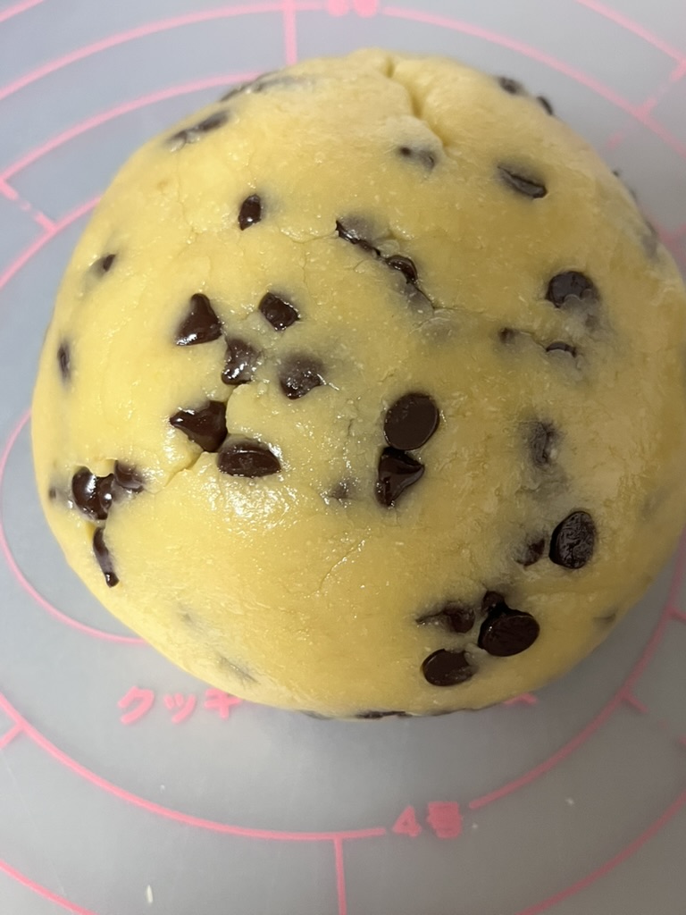 - 生地がまとまったら、チョコチップを加え生地とよく混ぜ合わせます。