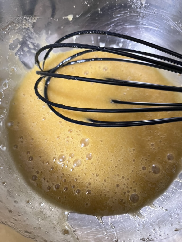 - 卵を加えて、さらになめらかになるまで混ぜます。